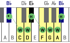 - WHWWHWW (whole, half, whole, whole, half, whole, whole)