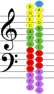 - We reviewed our anchor Cs (low C, bass C, middle C, treble C, high C)